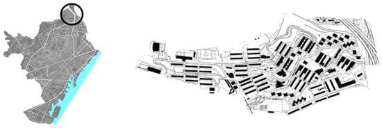 The Ciutat Meridiana neighborhood is located in the Nou Barris district of Barcelona, Spain. The construction of social housing in Ciutat Meridiana started around the early 1970s and continued until the late 1990s (Figure 1). The region needed more housing for its increasing population and immigrants who came after World War II, which led to high urbanization rates in Catalonia and Spain. Consequently, projects were developed to create mass housing areas like Ciutat Meridiana. The neighborhood has historically been characterized by long-term poverty and socio-economic problems, such as low-income levels for its residents. The area has faced a housing crisis and has seen a high number of housing evictions [23,24].