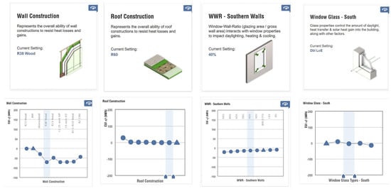 Table 2 lists the thermophysical parameters of the selected scenario. The thermal conductivity was calculated based on improvement scenarios provided by Autodesk INSIGHT. Glass fiber batt insulated cross-laminated panels (X-LAM) were chosen for their effectiveness in nZEB building demonstration (U = 0.1545 W/(m2K).