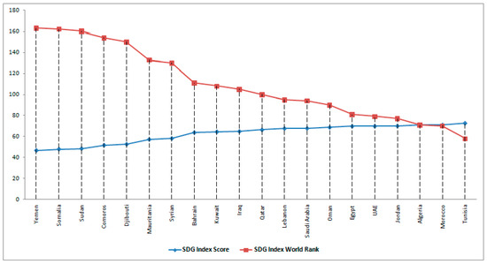 SDG Index Score (0–100) and world ranking for the Arab countries—2023.