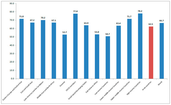 - Bayoumi, M.; Luomi, M.; Fuller, G.; Al-Sarihi, A.; Salem, F.; Verheyen, S. Arab Region SDG Index and Dashboard Report; Mohammed Bin Rashid School of Government, (MBRSG), Anwar Gargash Diplomatic Academy (AGDA) and UN Sustainable Development Solutions Network (SDSN): Dubai, United Arab Emirates, 2022. [Google Scholar]
