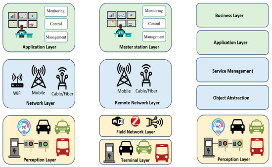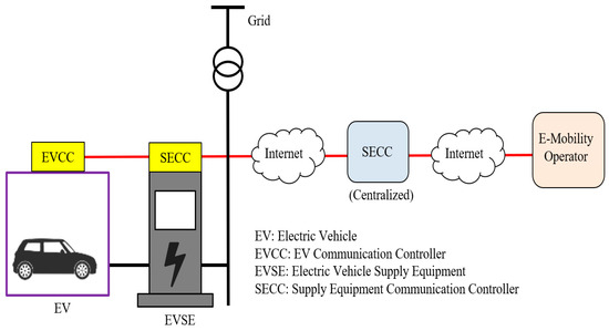 Nowadays, electric vehicles have become a primary element in the smart city ecosystem, contributing to reducing greenhouse gas emissions and pollution [1]. In this direction, many manufacturers are offering different models of electric vehicles, and over the next few years, more electric vehicle models will be available in the market. With the grid integration of many electric vehicles, managing and controlling the energy demand of electric vehicles will become more challenging due to vehicle operation modes that adapt a bidirectional energy flow among the electric vehicles and the electric power grid. Among the long-term solutions to overcome the high electric vehicles energy demand is to upgrade the current electric power infrastructure (transformers, power lines, etc.), which will require a potential cost and investments. Other solutions, such as scheduling techniques and intelligent control, will play an essential role in solving such high energy demand of electric vehicles in the near term without infrastructure upgrading [2]. Most of these solutions and techniques will require appropriate communication architectures that enable communication among charging stations, electric vehicles, energy management systems, and the electric power grid.