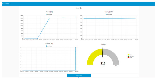 Station 3 view shows information on status, power, energy, current, and voltage.