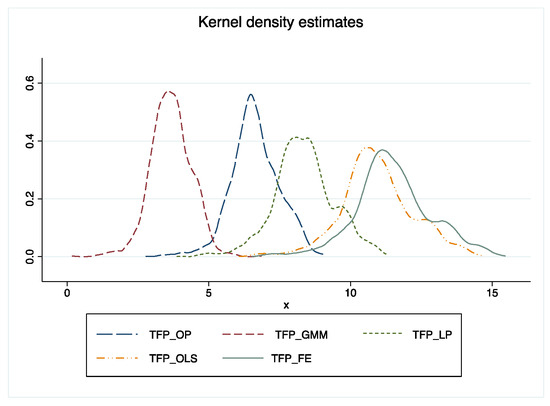 Kernel density maps for different algorithms of total factor productivity.