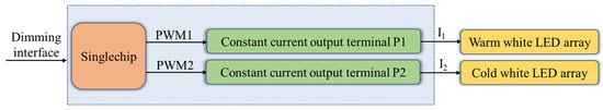 - Garcia, J.; Dalla-Costa, M.A.; Cardesin, J.; Alonso, J.M.; Rico-Secades, M. Dimming of high-Luminance LEDs by means of luminous flux thermal estimation. J. IEEE Trans. Power Electron. 2019, 24, 1107–1114. [Google Scholar] [CrossRef]