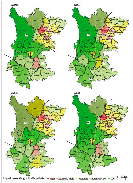 5.1. Temporal Evolution Characteristics of Seismic Disaster Risk in the Sichuan–Yunnan Region