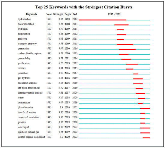 For further analysis, we selected the top 25 most prominent keywords in the literature from 1993 to 2022 according to CiteSpace and also made a co-citation reference network with cluster visualization and hotspot outburst (Figure 8). This selection can help us to visually identify research hotspots in a neighborhood during a certain period, the duration of the research, the transition from one field to another, and the focus of research in recent years [73]. We sorted keywords by time (Figure 8) and by outbreak intensity (S8).