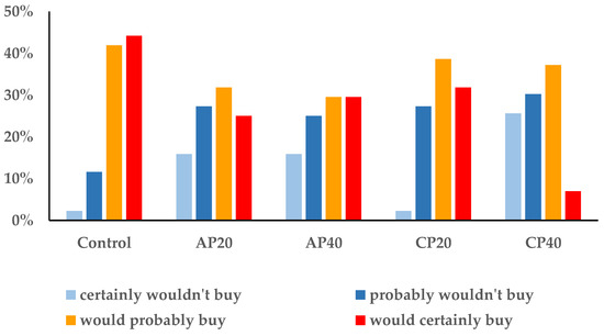 Responses of the sensory analysis panel tasters (n = 44) in terms of buying intention for crackers.