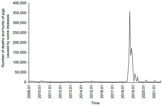 The monthly number of deaths and hunts of pigs caused by swine diseases from 2009 to 2021 in China. Source: BricBigData (https://www.agdata.cn).