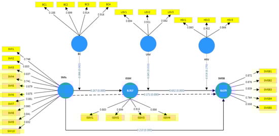 The concept of intention to shop from social media (ISSM) is central to our research, directly impacting SMSB and serving as a mediator between SMIs and SMSB. SMIs influence SMSB by meditating on the ISSM and leveraging their perceived authenticity, credibility, and expertise to shape consumer intentions. SMIs create relatable content that resonates with their followers, which enhances the followers’ intention to engage in shopping activities on social media platforms. This intention, in turn, directly influences their actual shopping behavior (SMSB). The mediation effect of the ISSM can be understood through the process where SMI endorsements and recommendations lead to increased shopping intentions, which subsequently result in higher instances of actual purchases and other shopping behaviors on social media [38,45].
