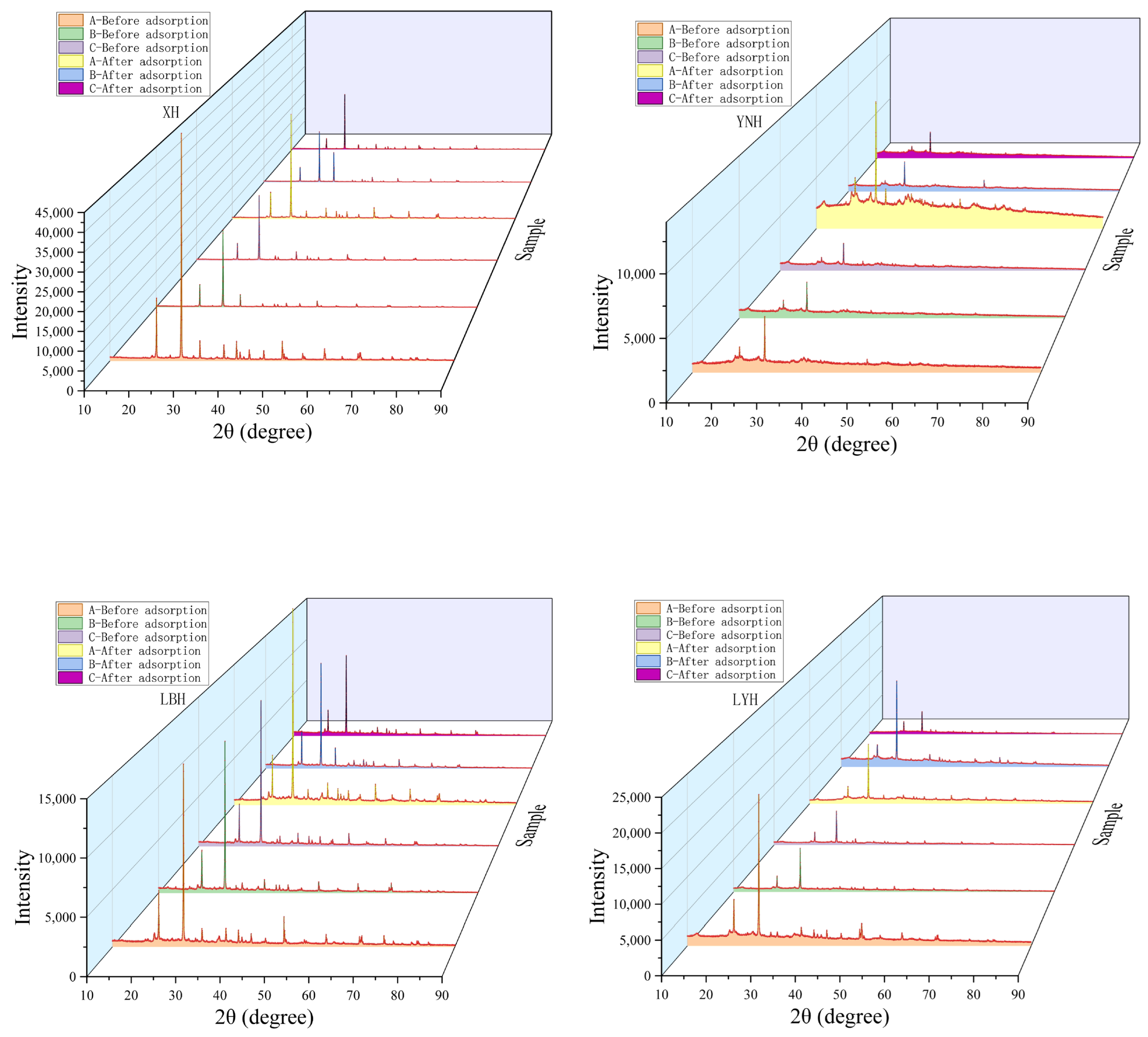 2.5. Characterisation of Sediment Complexes before and after Zn Adsorption