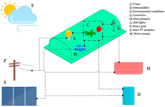 Schematic of the agrotunnel integrated with the energy provision equipment.
