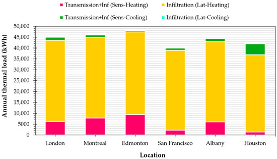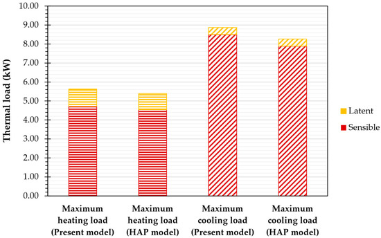 Total latent heat loss through infiltration is calculated using Equation (7). Accordingly, the maximum total heating load will be calculated by Equation (14):