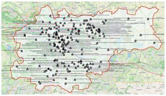 Figure 5. A map of the locations of primary schools in Krakow.