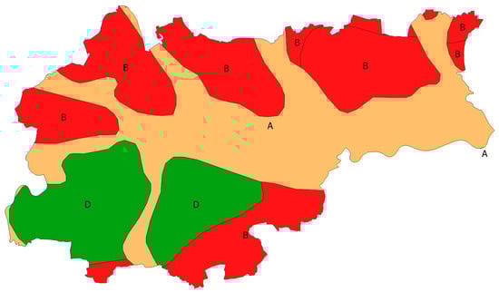 The CN parameter was determined based on the soil group identified from the soil-agricultural map according to IUNG [34] (Figure 11) and the type of land cover and land use. Soils are classified into four HSG’s (A, B, C, and D) according to their minimum infiltration rate, which is obtained for bare soil after prolonged wetting (Table 1) [37].