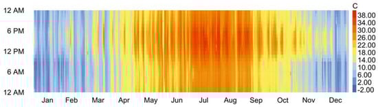 The dry bulb temperature and enthalpy humidity charts of Changsha are shown in Figure 3 and Figure 4, both of which are exported from Ladybug 1.5.0 software.
