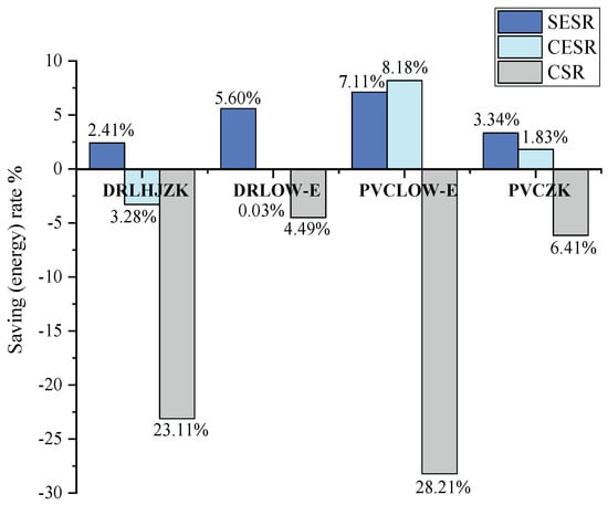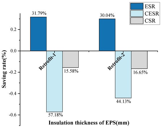 The energy saving rate (ESR), carbon emission saving rate (CESR), and cost saving rate (CSR) were compared to the initial value of the building, and different envelope design combinations were evaluated according to the three dimensions to determine the best energy saving in retrofit. The calculation method is shown as follows: