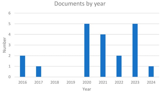 The number of publications in general has increased in recent years, with the highest number of articles published in 2020 and 2023 (both with 5 articles). It should also be noted that there were no articles published on this topic in 2019. Figure 3 illustrates the evolution of the number of articles published per year on the subject.