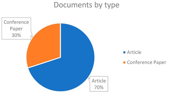 Following this, the types of document obtained were analyzed. Of the 20 documents, 30% were conference documents, while the remaining 70% were articles. This is analyzed in Figure 4.
