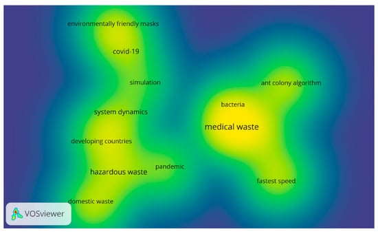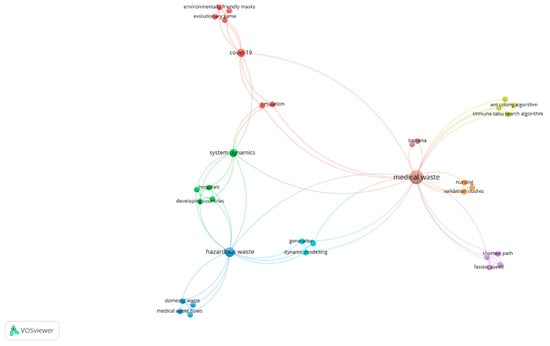 The analysis of key words is important as it makes it possible to identify the main topics of each publication. Figure 9 presents the occurrence of key words using the WordArt software. Due to the substantial number of keywords, only those with more than two occurrences were analyzed. It should be mentioned that the larger the keywords, the greater the number of occurrences in the publications under analysis. Figure 9 shows that concepts such as COVID-19, Medical Waste and Hospital Waste are those with the most occurrences.