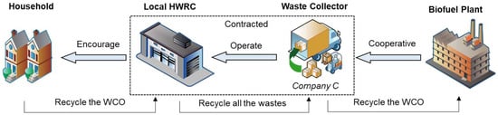 Currently, several researchers have conducted research on the recycling status and models of WCO in different regions. For example, Loizides et al. [54] examined Cyprus’s InnovOleum system, combining WCO collection with social causes for sustainable operations. Belgium’s Valorfrit system, involving 99 entities, coordinates national WCO collection and reporting [12]. In the Netherlands, a nationwide system with 2000 collection points encourages resident participation in WCO recycling [12].