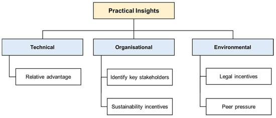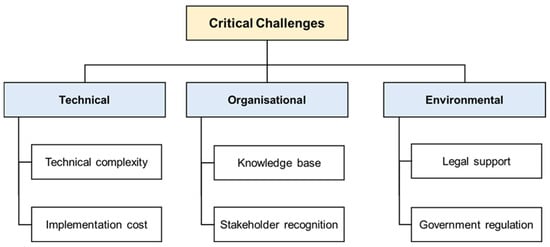 Research leveraging the TOE framework has explored various factors impacting BCT adoption. Malik et al. [77] highlighted Australian organizations’ perceived benefits of BCT, especially in enhancing transparency and security. Ganguly [75] identified 40 challenging factors for Indian logistics firms, while Xu et al. [76] noted BCT’s potential to improve efficiency in the German automotive SC. However, recognition from stakeholders emerges as one of the main challenges to the adoption of BCT, such as Clohessy and Acton [78] emphasized the importance of top management support and organizational readiness in Irish companies. In contrast, Dehghani et al. [79] focused on technological aspects affecting organizational decisions on BCT. Other studies like Kamble et al. [80,81] and Gökalp et al. [82] explored factors influencing BCT adoption in SCs, with the latter underscoring environmental determinants. Kouhizadeh et al. [83] and Xie et al. [63], respectively, discussed the feasibility limitations of adopting BCT in sustainable SC and recycling chains.