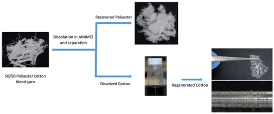 - De Silva, R.; Wang, X.; Byrne, N. Recycling textiles: The use of ionic liquids in the separation of cotton polyester blends. RSC Adv. 2014, 4, 29094–29098. [Google Scholar] [CrossRef]