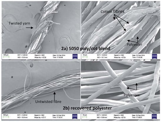 - Hou, W.; Ling, C.; Shi, S.; Yan, Z.; Zhang, M.; Zhang, B.; Dai, J. Separation and characterization of waste cotton/polyester blend fabric with hydrothermal method. Fibers Polym. 2018, 19, 742–750. [Google Scholar] [CrossRef]