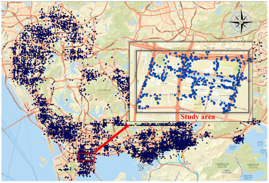 The data for this study on bike sharing originate from the Shenzhen Municipal Government’s Open Data Platform (https://opendata.sz.gov.cn/ accessed on 16 July 2024). The dataset spans from January to August 2021 and includes approximately 240 million bike-sharing orders. It comprises eight data items: user ID, start time, start longitude, start latitude, end time, end longitude, end latitude, and enterprise ID.