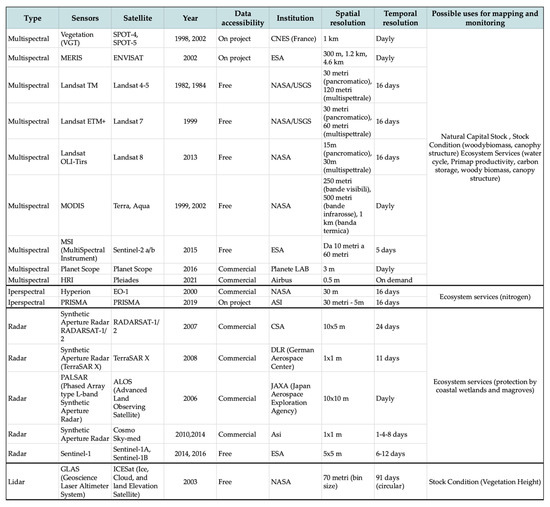 - Chauvenet, A.L.; Reise, J.; Kümpel, N.F.; Pettorelli, N. Satellite-Based Remote Sensing for Measuring the Earth’s Natural Capital and Ecosystem Services. 2015. Available online: https://www.researchgate.net/publication/313143864_Satellite-based_remote_sensing_for_measuring_the_earth's_natural_capital_and_ecosystem_services (accessed on 15 January 2024).