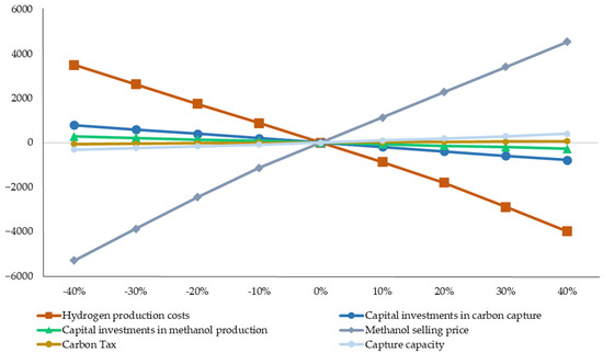 The results obtained were based on standard approaches to feasibility studies, including modeling discounted cash flows of the project, as well as using the scenario modeling method to conduct an assessment taking into account the GHG tax in force in the region. The minimum price of a CO2-based product that ensures investment returns was found using reverse calculation by means of VBA coding in Excel. Additionally, sensitivity analysis was employed to analyze the factors affecting the cost of the project.