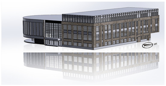 University buildings have grown to serve the diverse demands of students as higher education expands. The newly constructed dining hall at Shanxi University’s Dongshan Campus in Taiyuan, Shanxi Province, China (38° N 112°33′ E), which serves as the primary focus of this study’s simulation analysis, boasts spacious dining rooms and a range of functional spaces, offering greater utility than traditional campus dining options. As seen in Figure 1, this canteen is a four-story glass curtain wall structure with a floor size of 16,634.98 m2 and a floor height of 5.4 m.