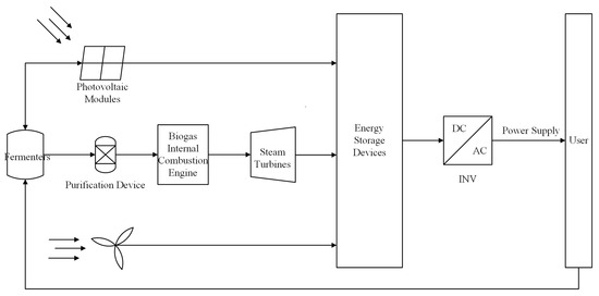 Schematic of the renewable system consisting of photovoltaic, wind, and biomass energy.