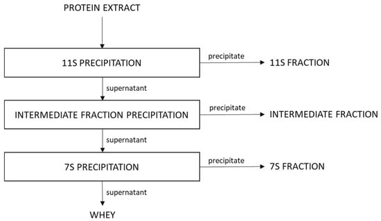 Industrially, simultaneous precipitation of both fractions is economically advantageous as it increases the product generation capacity. On the other hand, efficient selective precipitation can be used for manipulating the properties and functionality of the final product since the 7S fraction has distinctive characteristics, such as better emulsification and foam production properties, when compared to the 11S fraction [31].