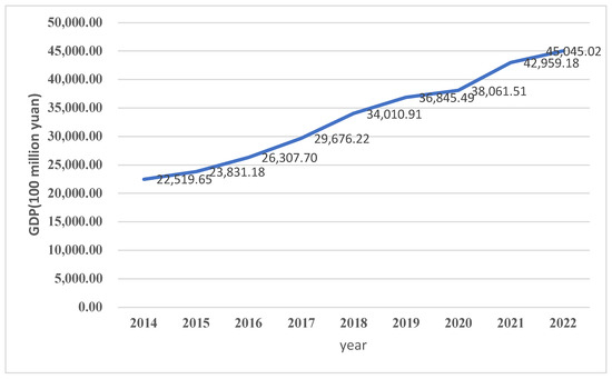 To demonstrate the economic development status, the GDP of Anhui Province from 2014 to 2022 is shown in Figure 4.