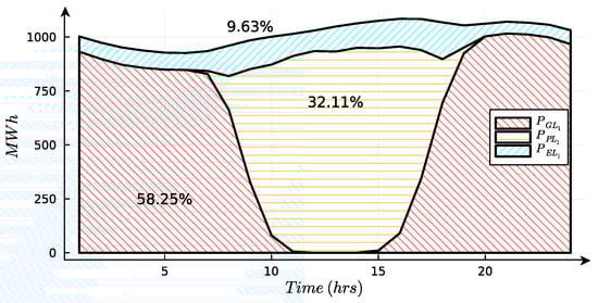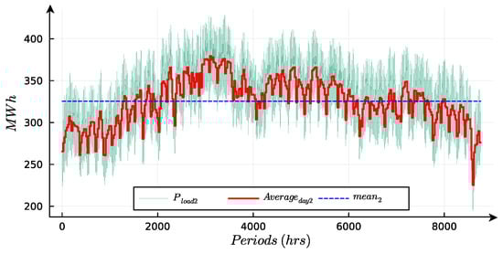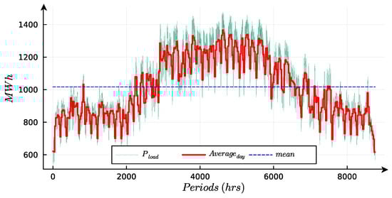 corresponds to a portion of the demand in the Eastern zone (EA). It accounts for only 5% of the total demand in that zone, as depicted in Figure 3. The average value of is estimated to be approximately 325 MW.