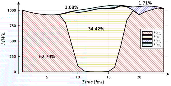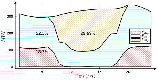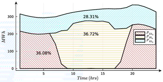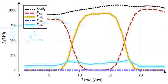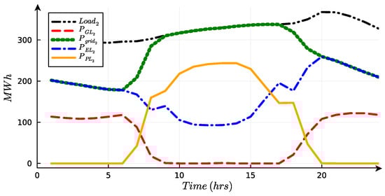 In the same way as the previous equations, an equation for the second load is formulated, with a reliability of 100%. Let represent the energy injected into the grid to provide energy to .