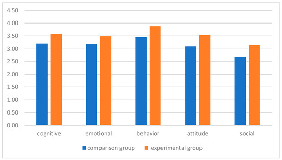 The experimental group had higher mean scores in all dimensions (Figure 9).