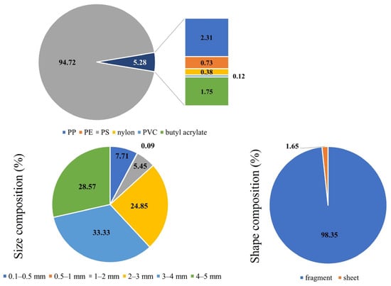 The microplastic polymer, size, and shape compositions in the entire sampling area.