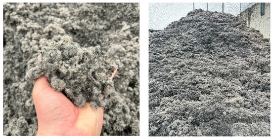 Samples for determination of acoustic and non-acoustic parameters were prepared using waste textile fibre (WTTF) (Figure 1), which was obtained during the end-of-life tyre recycling process in the tyre recycling company in Lithuania, Gargždai town. During the recycling process, three main components were separated.