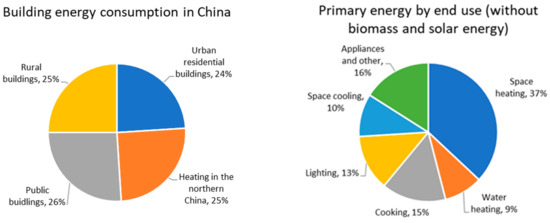 The building sector consumes about 40% of society’s total energy consumption in developed countries, while that figure in China is about 20% [1]. Two-thirds of new buildings worldwide are being built in China. The percentage will definitely increase in the near future with the rapid development of a promising economy and urbanization in China. Furthermore, space heating and cooling systems have accounted for nearly 60% of building energy consumption in China. At the same time, China has the highest CO2 emissions. The development of zero-energy buildings is progressing very quickly around the world. Zero-energy buildings have recently gained much attention at the national level in China. A Chinese national guideline about nearly zero-energy buildings (NZEBs) was implemented in 2017 [2]. Zero-energy buildings may be a solution for the development of low-energy buildings in China, which can reduce primary energy consumption and [3] greenhouse gas emissions in the building sector, particularly in the cold region of China [4].