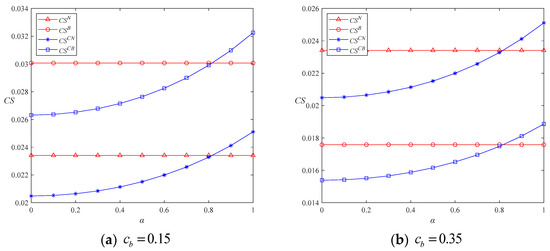 Recycling investment. Following Ranjbar et al. [1] and Hong et al. [34], we assume that in a competitive recycling situation (i.e., C-mode), the retailer’s (TPR’s) recycling investment will affect the TPR’s (retailer’s) recycling rate, i.e., and , where , and the investment cost coefficient of recycling is sufficiently large. When , there is no competition between the retailer and TPR. In practice, one party’s investment typically has a greater impact on its own effective investment than on that of its competitor. Therefore, we assume [9,16,18].