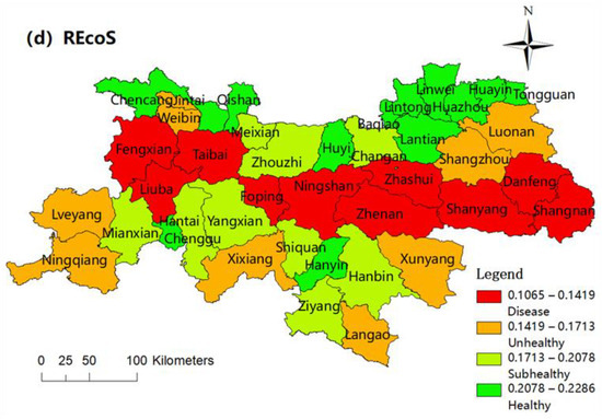 Rural Ecosystem Health Assessment and Spatial Divergence—A Case Study of Rural Areas around Qinling Mountain, Shaanxi Province, China