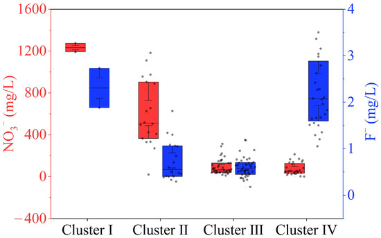 F− and NO3− concentrations in groundwater according to the four clusters.