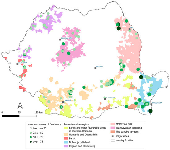 According to the final score, the websites offering the most detailed information belong to wineries located in the eastern part of the country, especially in Moldova, Muntenia and Dobrogea (Figure 2).