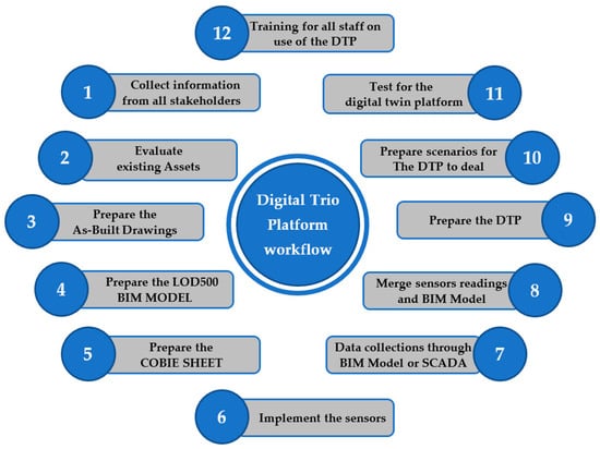 For existing and new buildings, a roadmap was developed to facilitate the creation of a digital trio platform, which aids in the control and operations of these structures, providing a clear flow chart to gain the maximum benefits of using the digital trio platform.