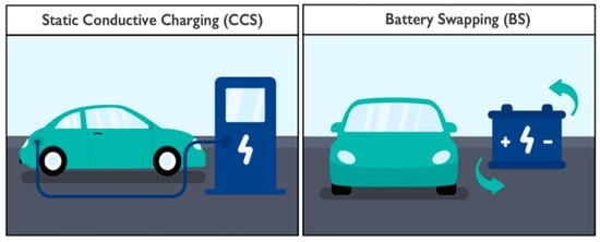 Basic representation of conductive charging and battery swapping charging methods.