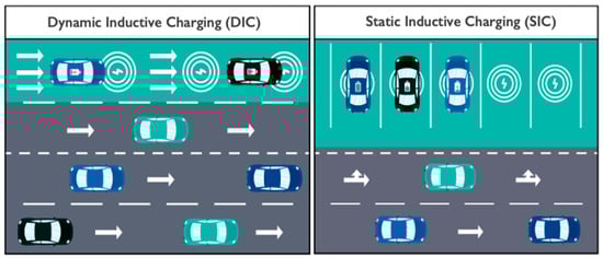DIC allows the EV to be charged while in motion, as illustrated in Figure 5. This novel strategy is implemented by constructing specialized lanes on highways for inductive charging from the road surface. It has the potential to reduce the size of the EV’s battery and increase mileage by allowing it to be charged while in motion.