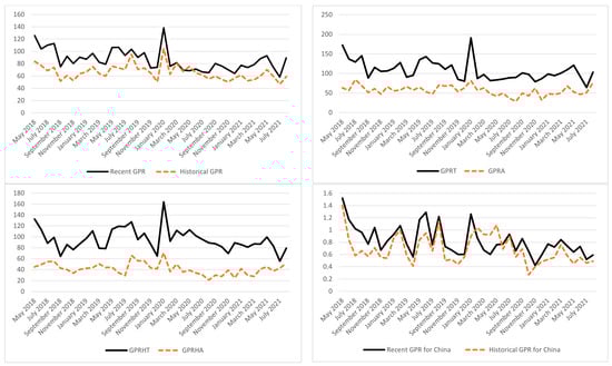 Furthermore, for the GPR and GPRH indices, this paper also decomposes them into derivative indices, the geopolitical acts index (gpra; gprha) (the names within parentheses represent the forms used in the empirical section of this paper) and the geopolitical threats index (gprt; gprht) for further analysis. Increases in these sub-indices, respectively, reflect the occurrence or escalation of current adverse events and the anticipation and threats of future adverse geopolitical events.