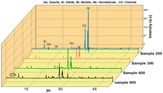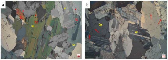 - Gomah, M.E.; Li, G.; Omar, A.A.; Abdel Latif, M.L.; Sun, C.; Xu, J. Thermal-Induced Microstructure Deterioration of Egyptian Granodiorite and Associated Physico-Mechanical Responses. Materials 2024, 17, 1305. [Google Scholar] [CrossRef] [PubMed]
