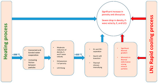 - Li, Q.; Yin, T.; Li, X.; Zhang, S. Effects of Rapid Cooling Treatment on Heated Sandstone: A Comparison between Water and Liquid Nitrogen Cooling. Bull. Eng. Geol. Environ. 2020, 79, 313–327. [Google Scholar] [CrossRef]